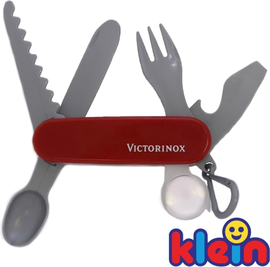 Das Kinder-Taschenmesser VICTORINOX von KLEIN ist eine detailgetreue, dennoch vollkommen sichere Nachbildung des legendären Schweizer Messers. Dank der präzisen Verarbeitung, des roten Griffs mit Logo und des praktischen Karabiners können kleine Abenteurer es am Gürtel befestigen und stets griffbereit haben.