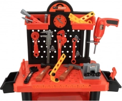 Die realistische Spielzeugbohrmaschine mit Batteriebetrieb, verschiedene Schlüsseltypen, ein Schraubendreher mit Bits, Ratsche, Säge sowie ein Schieblehre-Messschieber ermöglichen vielfältige Aktivitäten – vom Schrauben und Spannen bis zum Messen und „Sägen“. Die sichere Ausführung aus Kunststoff ist ideal für Kinder ab 3 Jahren.