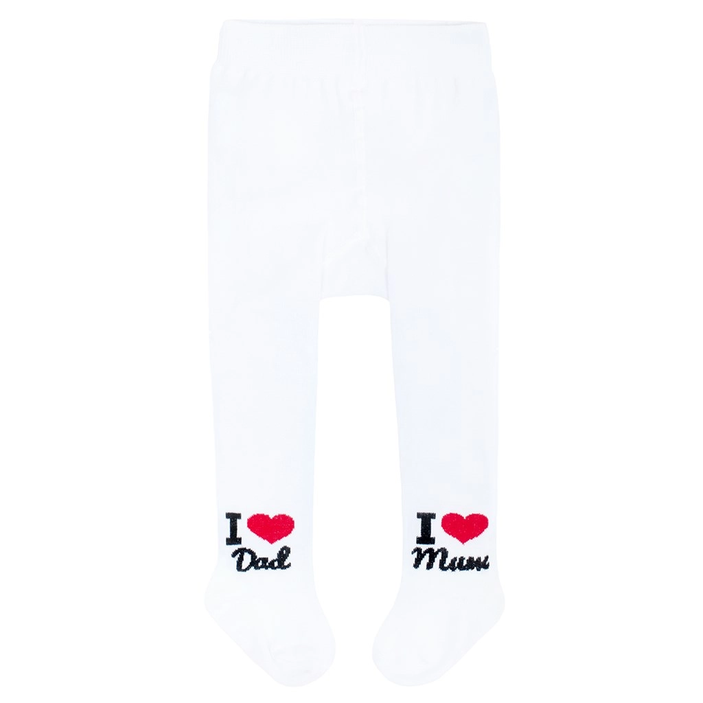 Diese Kinderstrumpfhose von NEW BABY in Weiß ist mit einem fröhlichen Bild auf dem Po sowie den Aufschriften „I Love Mum“ und „I Love Dad“ auf den Hosenbeinen verziert. Perfekt für den täglichen Gebrauch zu Hause oder beim Spazierengehen und dank des angenehmen Materials den ganzen Tag über bequem.