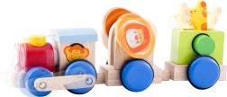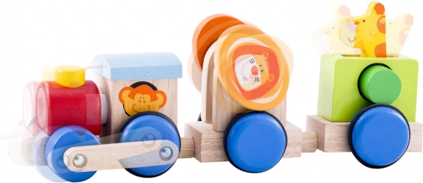 Der Safari-Zug animiert Kinder zur Bewegung und unterstützt die Entwicklung ihrer Grobmotorik durch spielerisches Ziehen und Stapeln.