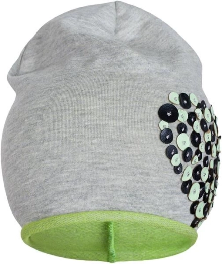 Die stylische und bequeme Mütze NEW BABY ist eine hervorragende Wahl für die Übergangszeit. Die feine 100% Baumwolle sorgt für angenehmen Tragekomfort, leitet Wärme ab und lässt die Haut atmen. Die niedliche Herzchen‑Applikation verleiht der grau‑grünen Mütze einen verspielten Look, der sich leicht mit dem Alltagsoutfit kombinieren lässt.