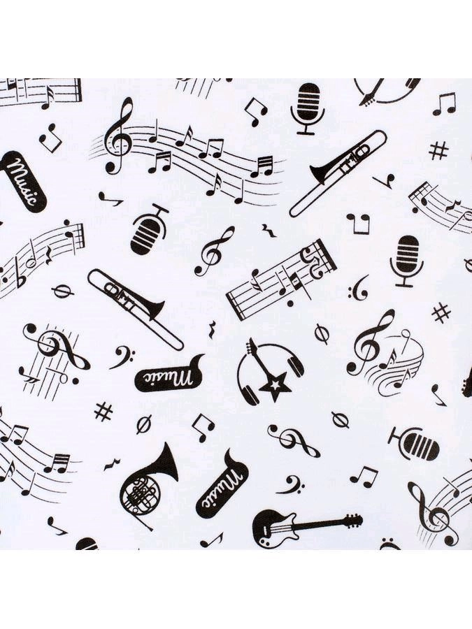 • Allover-Print mit Noten und Musikinstrumenten – verspieltes Design