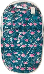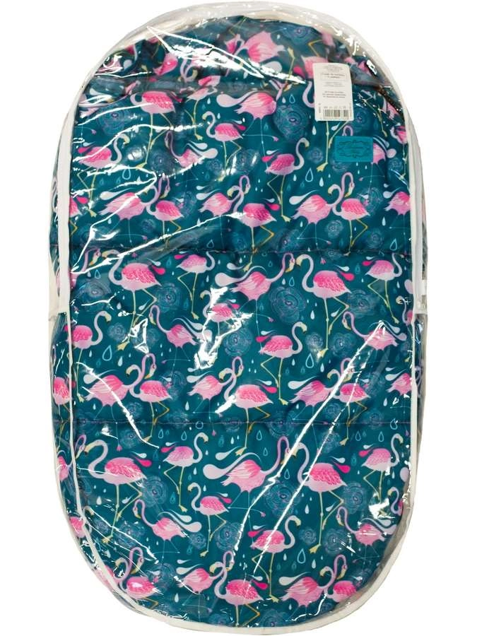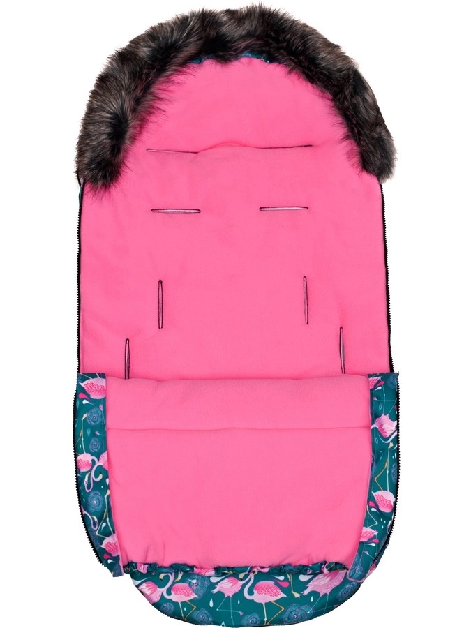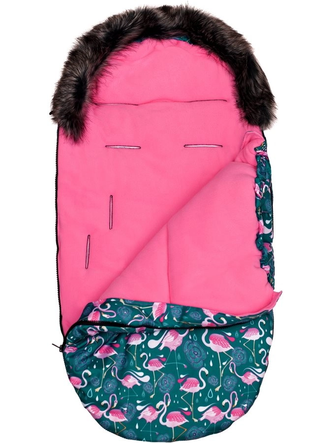 Öffnungen für 5-Punkt-Sicherheitsgurte und eine praktische rückseitige Tasche sorgen für stabilen Halt des Fußsacks und eine sichere Fahrt.