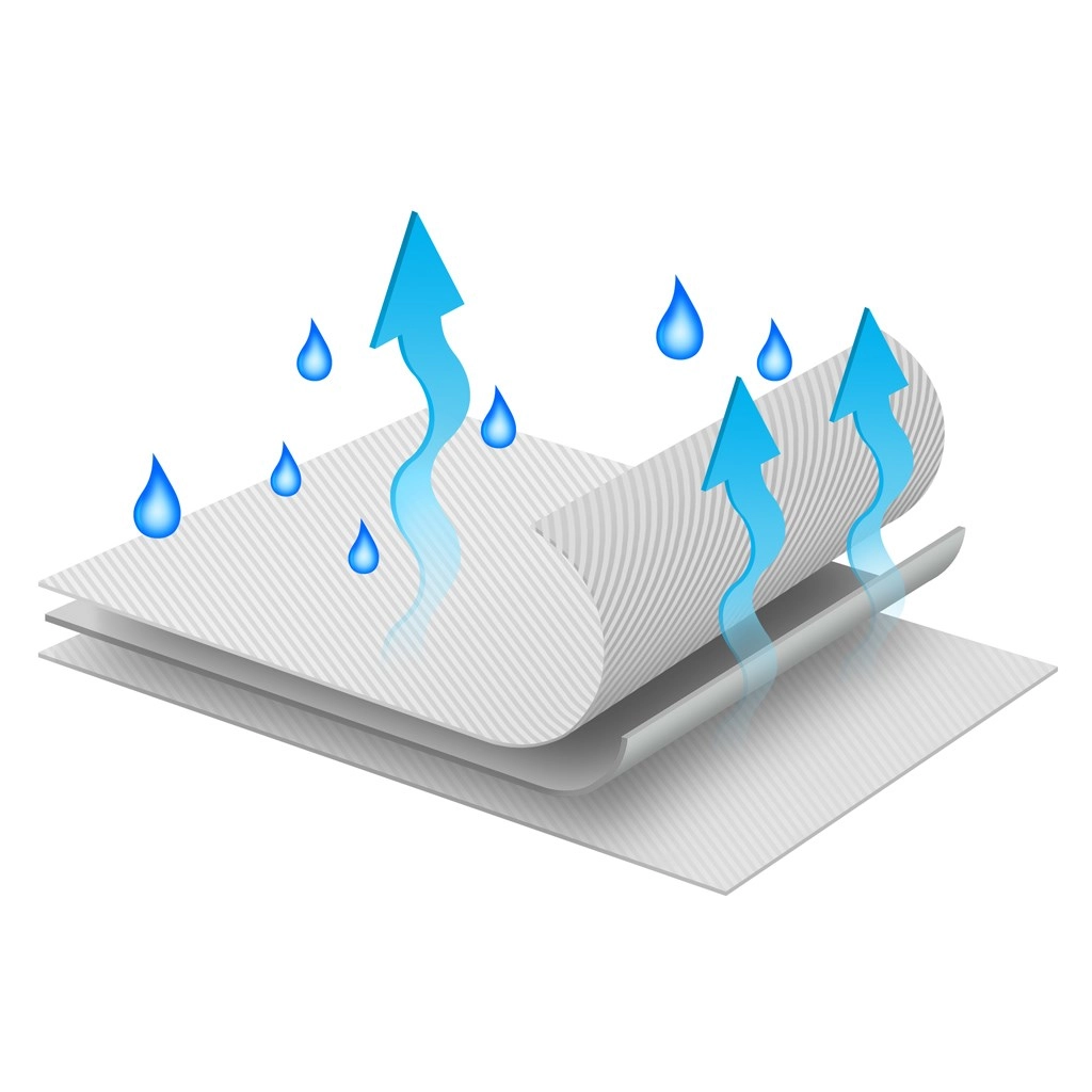 Mehrere Schichten mit atmungsaktiver Struktur helfen, Feuchtigkeit abzuleiten und die Oberfläche während der Nutzung trocken und angenehm zu halten.