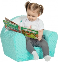 Dieser mintfarbene Sessel aus weichem Minky ist für sicheres und bequemes Sitzen kleiner Kinder konzipiert. Dank hochwertigem Polyurethanschaum ist er leicht, stabil und auch von Kinderhänden mühelos zu bewegen. Der abnehmbare Bezug aus 100% Polyester lässt sich einfach waschen, sodass der Sessel immer sauber und frisch bleibt.