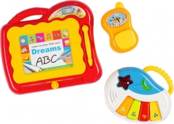 Das klickende Telefon und die abwischbare Tafel lassen sich leicht abnehmen und in die Hand nehmen – ideal auch für unterwegs.