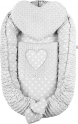 Luxus-Babynestchen mit Kissen und Decke NEW BABY Minky Herz – grau