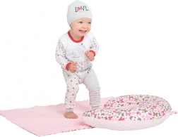 Das Stillkissen New Baby ist für eine komfortable Position von Baby und Mutter beim Stillen, Ausruhen und Spielen konzipiert. Eine Seite besteht aus weichem Minky-Stoff mit 3D-Noppen, die die Sensomotorik des Kindes sanft stimulieren und ein angenehm wärmendes Gefühl vermitteln. Die andere Seite besteht aus 100% Baumwolle mit zarten Mustern, die Wahrnehmung und Fantasie fördern.