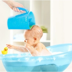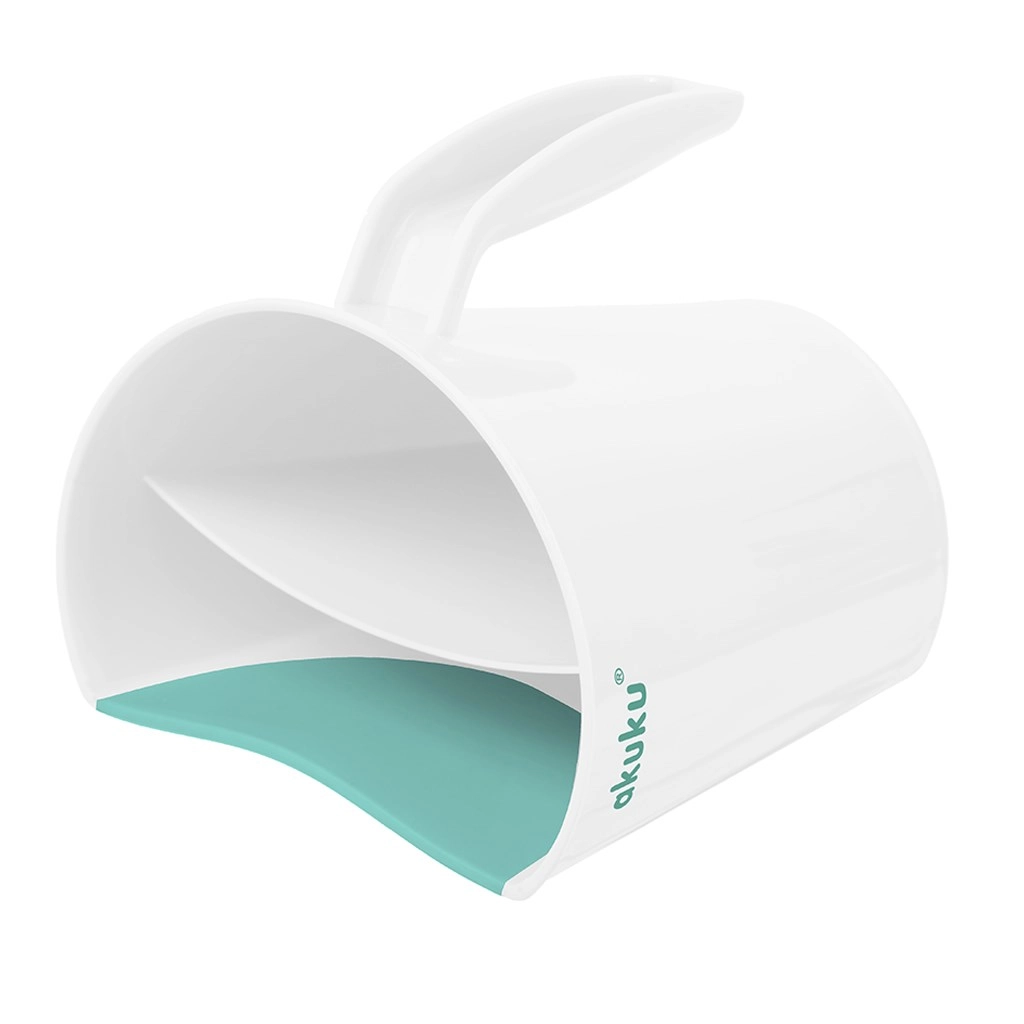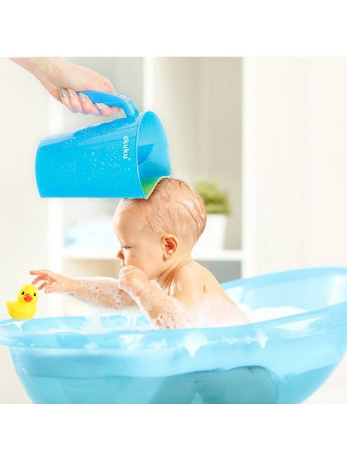 Die AKUKU Spülkanne in Weiß‑Mint ist ein cleverer Helfer für das tägliche Baden von Babys und größeren Kindern. Der weiche, anpassungsfähige Rand schmiegt sich sanft an die Stirn und lenkt den Wasserstrahl so, dass er nicht in die Augen gelangt. Zwei getrennte Kammern ermöglichen kontrolliertes Eingießen und gleichmäßiges Ausspülen von Shampoo und Schaum.