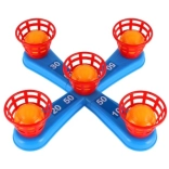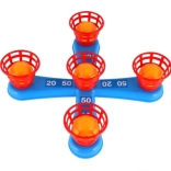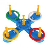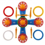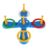 Dieses unterhaltsame Spiel ist ideal für die kleinsten Kinder. Es enthält ein Kreuz mit fünf Spitzen, auf die Kinder bunte Plastikringe werfen, um Punkte zu sammeln. Jeder erfolgreiche Wurf, bei dem der Ring auf einer Spitze platziert wird, bringt Punkte und fördert den Wettbewerb und die Präzision. Die zweite Spielvariante funktioniert nach demselben Prinzip, allerdings wurden die Spitzen durch Körbchen für Bälle ersetzt, was eine neue Herausforderung bietet.