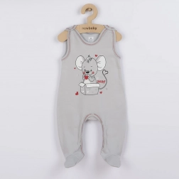 Die Strampelhose wird von kontrastierenden Einfassungen und einem großen Mausmotiv geziert, das Jäckchen ist unifarben und über die gesamte Länge zu öffnen. Die hochwertige Verarbeitung entspricht dem Standard der tschechischen Marke New Baby, und die Mouse-Kollektion überzeugt mit einem klaren, zeitlosen Design in neutralem Grau.