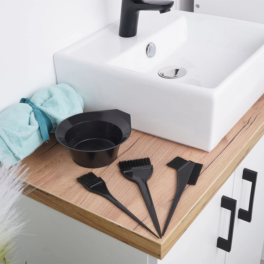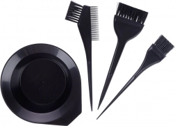 Dieses praktische Set zur Haarcoloration bietet alles, was Sie für präzises Mischen und gleichmäßiges Auftragen benötigen. Die Schale mit markierter Messskala (50–200 ml) erleichtert exaktes Dosieren, während drei Pinsel in unterschiedlichen Breiten präzises Arbeiten selbst an schwer zugänglichen Stellen ermöglichen. Der robuste schwarze Kunststoff hält Friseurchemikalien stand und lässt sich leicht reinigen.
