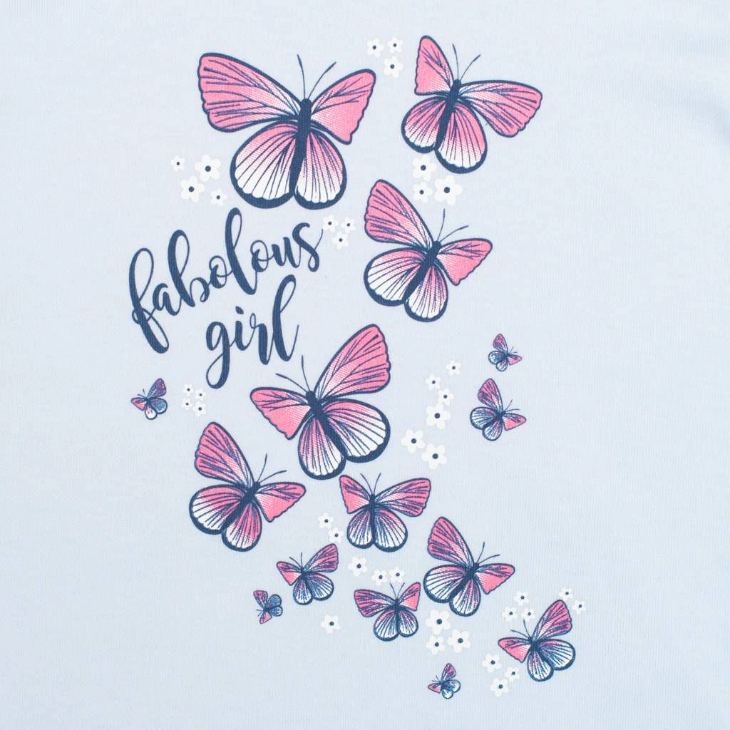 Dieses Mädchenset ist ideal für den Alltag und festliche Momente. Das T-Shirt mit kurzen, gerafften Ärmeln ist mit einem zarten Schmetterlingsmotiv verziert und lässt sich dank der Schulterknöpfe leicht über den Kopf anziehen. Das Röckchen in Dunkelblau hat eine elegante Rüsche, die dem Outfit einen verspielten Look verleiht, und einen breiten Gummibund für maximalen Komfort.