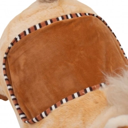 Das Soundmodul zwischen den Ohren gibt auf Knopfdruck authentische Pferdegeräusche wieder und regt fantasievolles Spiel an.