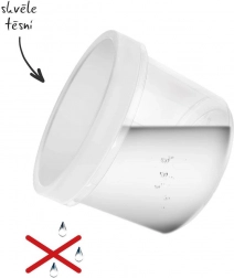 Kompakter und robuster Behälter mit weißem Deckel und transparentem Körper ermöglicht die einfache Kontrolle des Inhalts ohne Öffnen. Dank der hochwertigen Deckeldichtung ist der Inhalt zuverlässig vor Auslaufen geschützt und bleibt länger frisch.