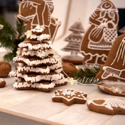 Enthalten ist ein farbiges Stallkulissen-Hintergrund, durch das Ihre selbstgemachte Lebkuchen- oder Keks-Krippenszene besonders gut zur Geltung kommt.
