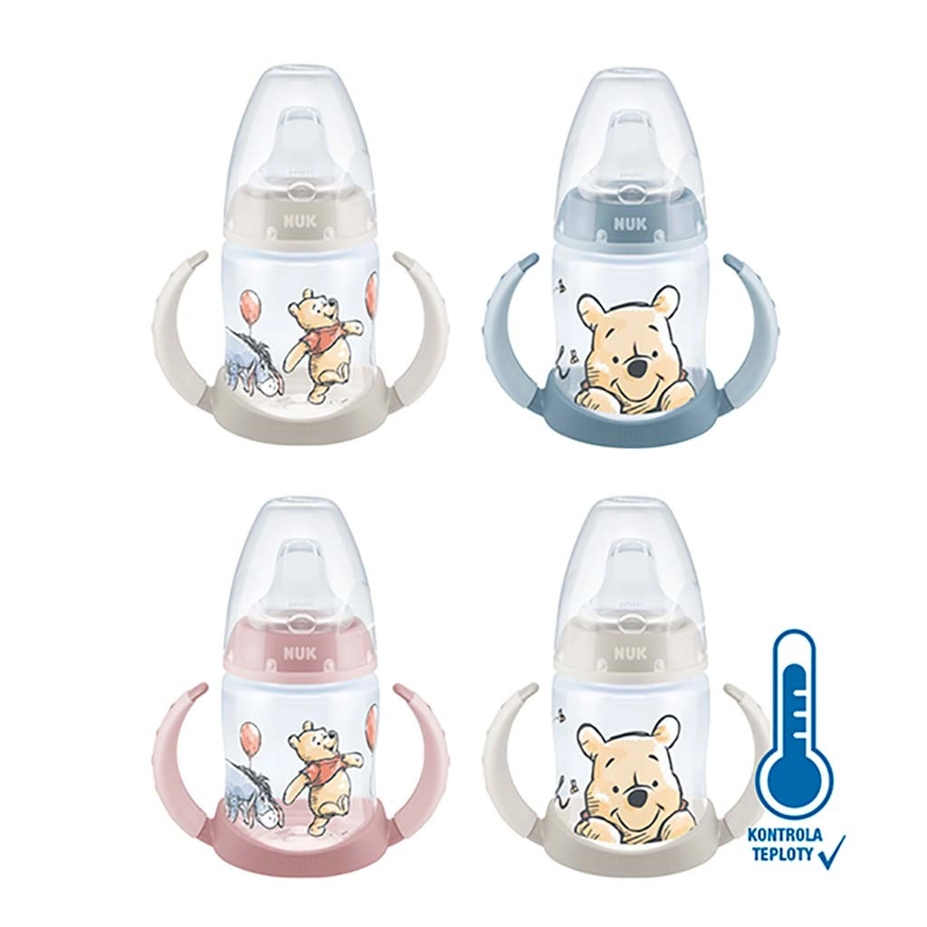 Die NUK First Choice Lernflasche mit Winnie‑Puuh‑Motiv ist für komfortables und sicheres Trinktraining von Kindern im Alter von 6 bis 18 Monaten konzipiert. Der Temperaturindikator informiert sofort, ob das Getränk servierbereit ist – ist der Inhalt zu heiß, verändert sich die blaue Farbe zu Weiß. Das weiche, auslaufsichere Silikontrinkteil verhindert Verschütten und unterstützt den sanften Übergang vom Stillen oder Füttern zum selbstständigen Trinken.