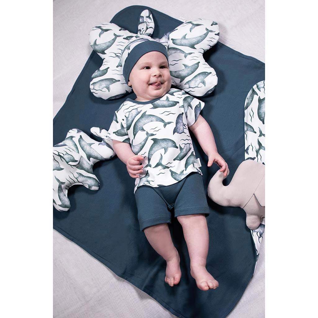 Diese niedliche Mütze im Tuchstil der Marke Nicol besteht aus weicher, atmungsaktiver 100% Baumwolle, die sich angenehm anfühlt und die empfindliche Babyhaut schont. Der elastische Bund sorgt für sicheren und komfortablen Sitz ohne Druckstellen, während der verspielte Delfin-Print dem Outfit einen zauberhaften Look verleiht.