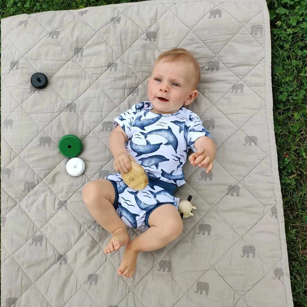Entdecken Sie die bequemen und stilvollen Baby-Bloomers Nicol Dolphin, genäht aus weicher und atmungsaktiver 100% Baumwolle. Der elastische Bund sorgt dafür, dass die Shorts nirgends drücken und sich leicht an- und ausziehen lassen. Das niedliche Delfin-Motiv verleiht dem Outfit eine verspielte Note.