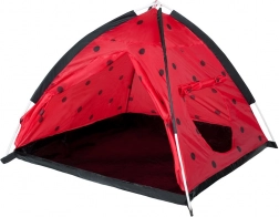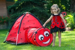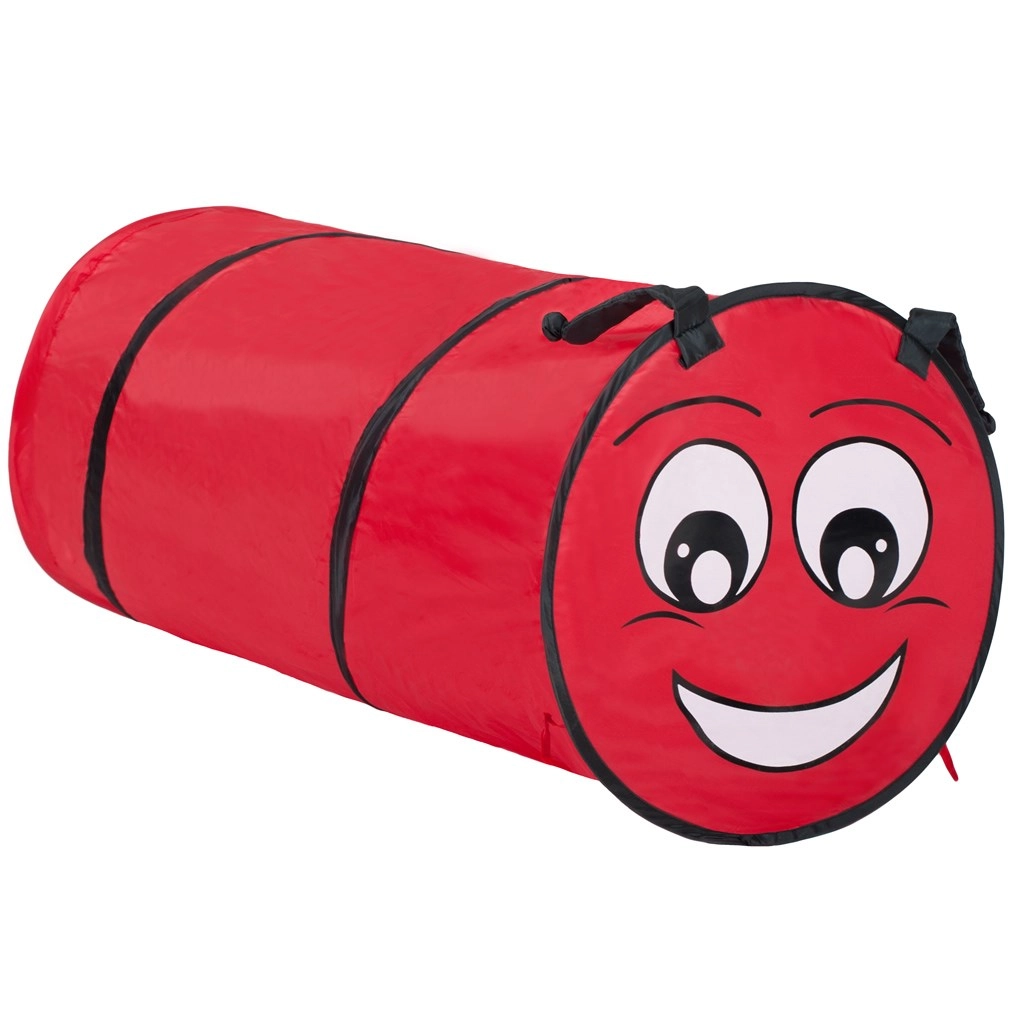 Dieses rote Zelt mit schwarzen Punkten und ansteckbarem Tunnel begeistert kleine Entdecker. Es lässt sich leicht auf- und abbauen, ist leicht und tragbar und eignet sich daher fürs Kinderzimmer, die Terrasse oder den Garten. Der robuste Polyester sorgt für eine lange Lebensdauer und einfache Pflege.