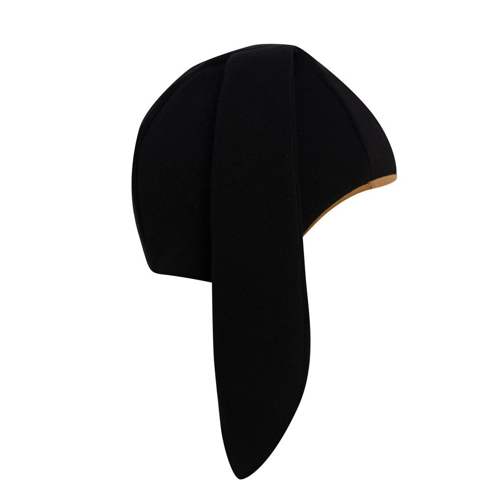 Diese schwarze Mütze mit niedlichen Öhrchen ist ein praktisches und modisches Accessoire für den Alltag. Das einfarbige Design lässt sich leicht mit jedem Outfit kombinieren und die durchdachte Form bedeckt die Ohren des Kindes optimal. Die Bindebändchen sorgen dafür, dass die Mütze gut hält, ohne zu verrutschen.
