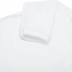 Der Strampler ist auf die Bedürfnisse der Kleinsten abgestimmt – der Rücken des Babys bleibt stets bedeckt, ob beim Schlafen oder bei den ersten Bewegungen. Das zeitlose Streifen-Design in Weiß lässt sich leicht mit der übrigen Erstausstattung kombinieren.