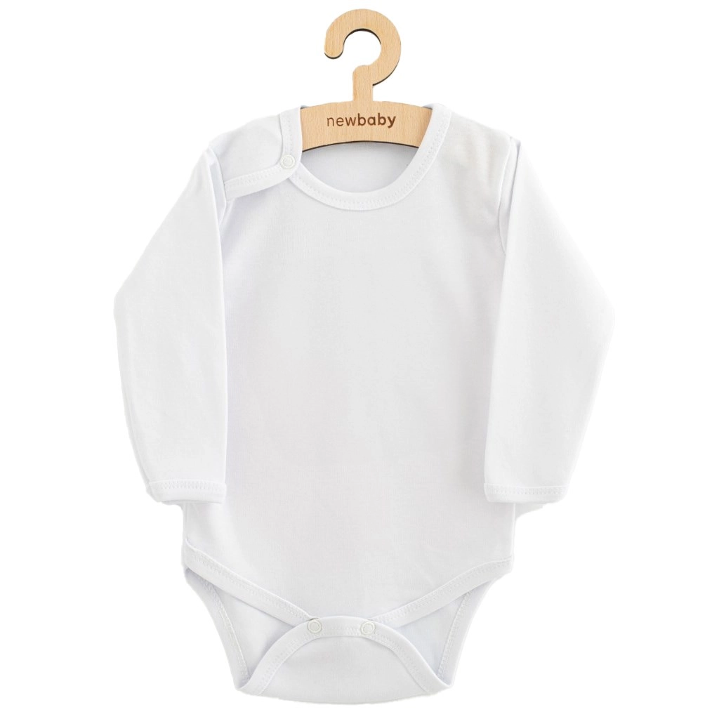 Klassischer Baby-Body von New Baby mit langen Ärmeln in universellem Weiß. Dank der Druckknöpfe an der Schulter und zwischen den Beinchen sind An- und Ausziehen sowie Wickeln schnell und bequem. Hergestellt aus 100 % Baumwolle für maximale Zartheit und Komfort für empfindliche Babyhaut.