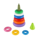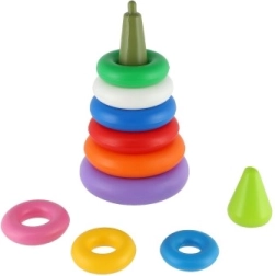 Jeder Ring hat eine andere Farbe, was beim Farbenerkennen und der Größendifferenzierung hilft. Kinder werden von den leuchtenden Farben fasziniert sein und Spaß am ständigen Stapeln und Zerlegen der Pyramide haben.