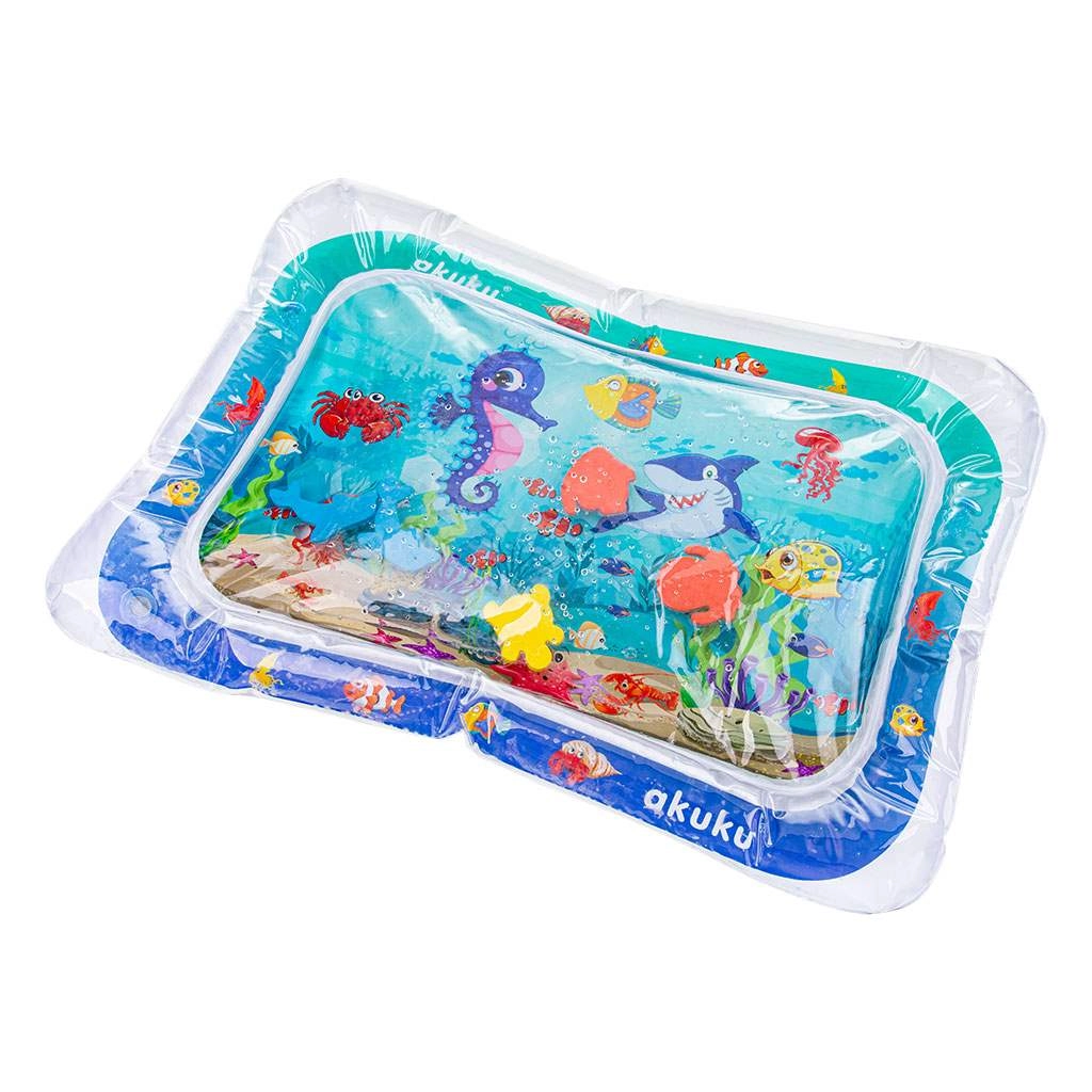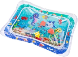 Die interaktive Wasserspielmatte Akuku Meereswelt wurde entwickelt, um spielerisch die Sinne zu stimulieren und die gesunde Entwicklung des Kindes zu unterstützen. Dank des wassergefüllten Mittelteils und der fünf schwimmenden Tierchen trainiert Ihr Baby die Bewegungskoordination, das Verfolgen mit den Augen und verbessert das Gleichgewicht. Gleichzeitig werden sanft die Muskeln von Kopf, Nacken, Schultern, Rücken und Bauch gestärkt.