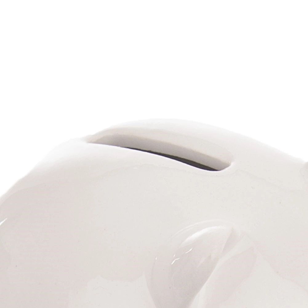 Die glatte, glänzende Oberfläche in Weiß verleiht der Spardose ein elegantes Aussehen und erleichtert zugleich die Pflege.