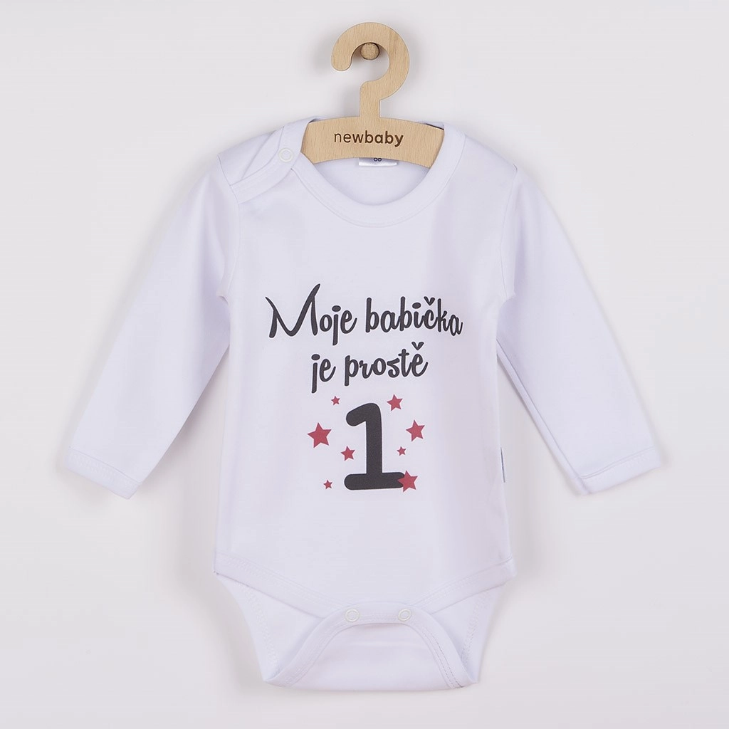 Niedlicher Baumwoll-Body mit langen Ärmeln der Marke New Baby mit dem witzigen Aufdruck Meine Oma ist einfach die Nummer eins, der jedem eine Freude macht. Hergestellt aus 100 % Baumwolle mit zertifizierten Druckfarben, die für Babys geeignet sind. Praktischer Druckknopfverschluss an der Schulter und im Schritt erleichtert An- und Ausziehen sowie Wickeln.