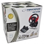 Esperanza High Octane ist ein kompakter Spielvolant geeignet für Computer und PlayStation-Konsolen. Erleben Sie das echte Fahrgefühl dank eines separaten Moduls mit Gas- und Bremspedalen.