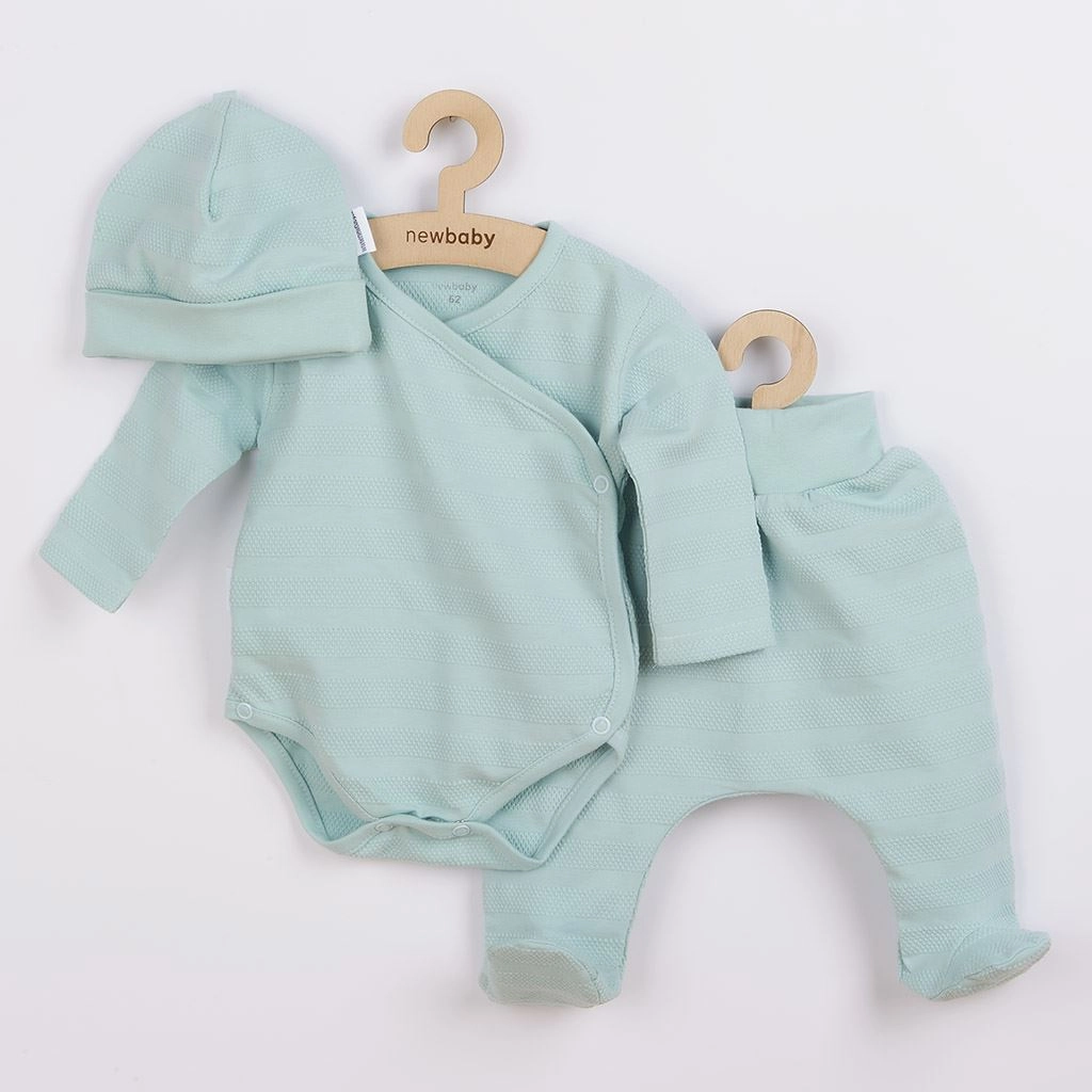 Praktisches und bequemes Set für Babys, bei dem an jedes Detail gedacht wurde. Dank des komplett zu öffnenden Bodys ist Wickeln und Anziehen schnell und schonend. Die Halb-Strampler mit breitem, elastischem Bund drücken nicht auf das Bäuchlein und sorgen den ganzen Tag über für Komfort. Das Mützchen mit breiterem Bund sitzt gut am Köpfchen und rutscht nicht.