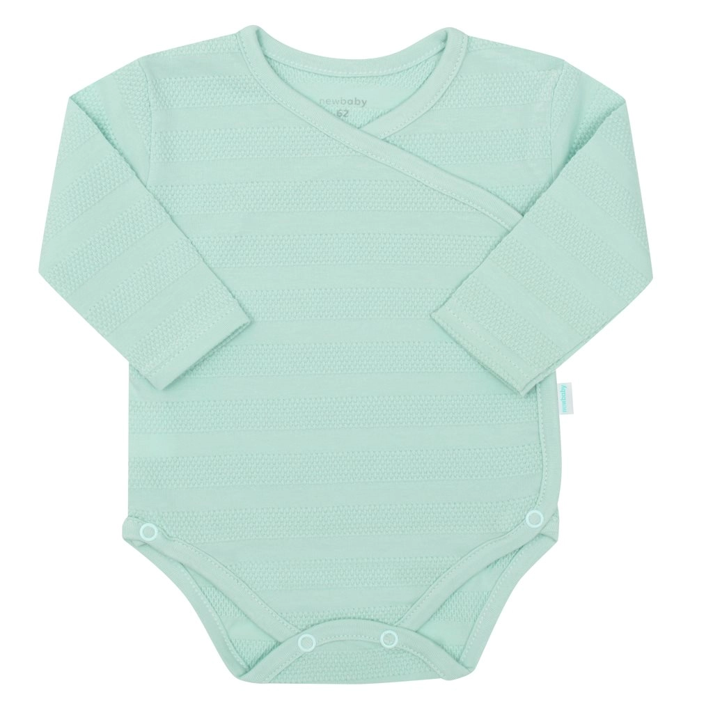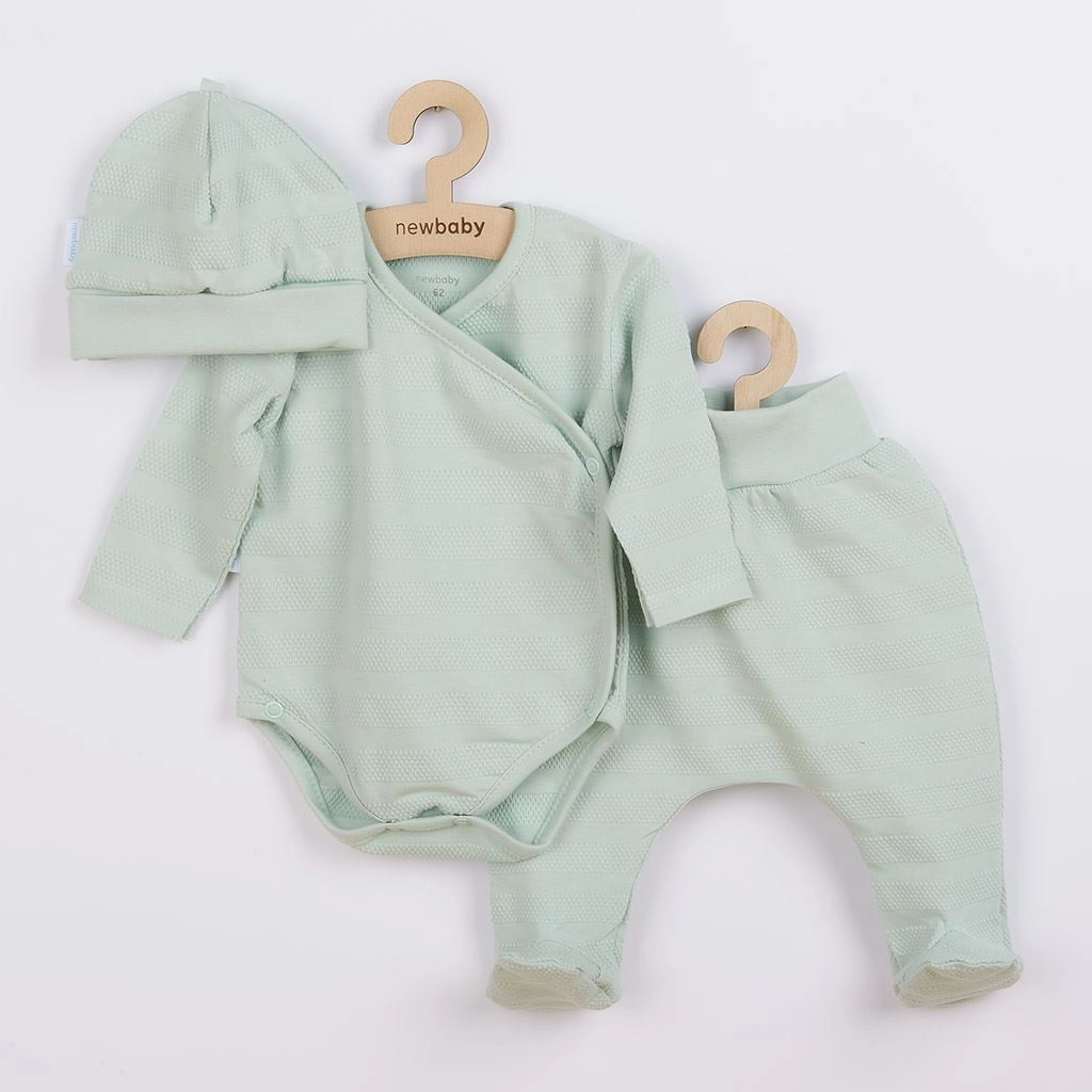 Dieses mintfarbene Set für Neugeborene vereint Komfort, Sicherheit und zarten Stil. Der Wickelbody mit Knöpfen über die gesamte Länge erleichtert Anziehen und häufiges Wickeln, die Halbstrampler mit breitem, elastischem Bund drücken nicht am Bäuchlein und die Mütze mit breiter Kante sitzt bequem auf dem Kopf. Das gesamte Set besteht aus hochwertiger, atmungsaktiver und weicher 100 % Baumwolle mit attraktiver, feiner Struktur.