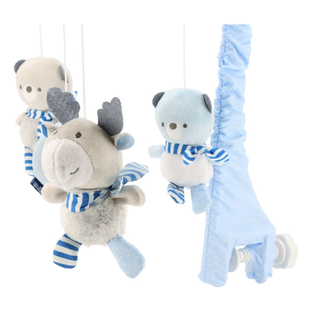 Das elektronische Kinderbett-Mobile Baby Mix ist ein idealer Helfer für ruhiges Einschlafen und Unterhaltung am Tag. Nach dem Einschalten drehen sich die Figuren sanft und es erklingt eine Auswahl aus 30 Melodien und beruhigenden Geräuschen. Weiche Plüschfiguren in zarten Farben sprechen den Blick des Kindes an und fördern die Entwicklung der Auge–Hand-Koordination.