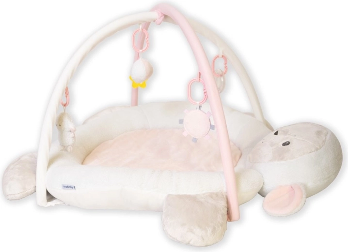 Enthalten sind abnehmbare Spielzeuge – Spiegel, raschelnde Elemente, quietschende Plüschfiguren und ein Beißring. Die Decke eignet sich für Zuhause und unterwegs, lässt sich leicht zusammenlegen und verstauen. Nutzbar als Spielunterlage, Nestchen oder weiches Kissen.