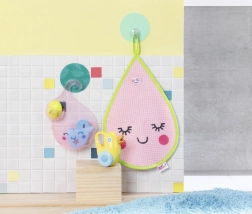 Ein rosa Handtuch in Tropfenform mit lächelndem Gesicht bietet eine weiche Textur für Spielspaß und Komfort während der Spielzeit Ihres Kindes.