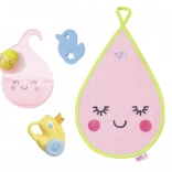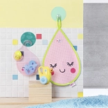 Ein rosa Schwamm in Tropfenform mit Lächeln ist ideal für sanfte Reinigung und Wasserspiele, die jedem Kind Freude bereiten.