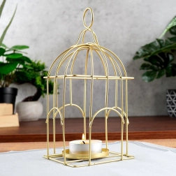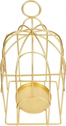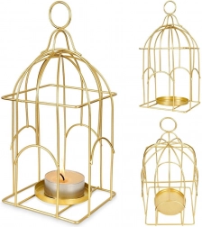 Die elegante, von einer Käfigform inspirierte Laterne schafft mit ihrem sanften Licht eine angenehme Atmosphäre und dient zugleich als auffällige Dekoration. Der langlebige Metallrahmen mit goldener Oberfläche sorgt für eine lange Lebensdauer und eine zeitlose Optik, die auf Tisch, Kommode oder Regal zur Geltung kommt.