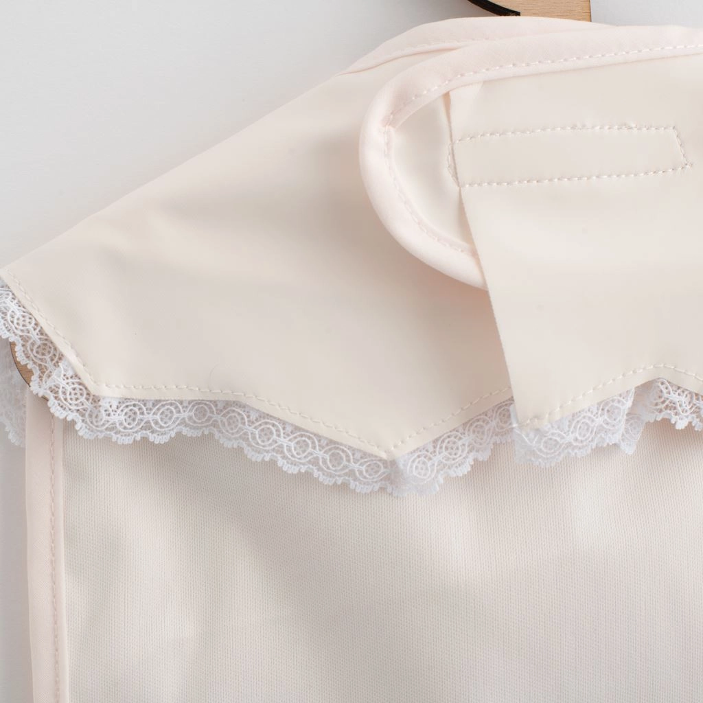 Das elegante Mädchen-Lätzchen NEW BABY mit feiner Spitze vereint schönes Design und hohe Funktionalität. Dank weichem 100 % Polyester ist es leicht, sanft zur Kinderhaut und pflegeleicht – einfach mit einem feuchten Tuch abwischen oder in der Maschine waschen.
