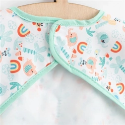 Die Lätzchen-Schürze New Baby ist für den täglichen Gebrauch konzipiert – sanft zur Kinderhaut und zugleich widerstandsfähig gegen Schmutz. Zwei Materialschichten sorgen für Komfort und Schutz: Die obere ist angenehm weich, die untere Schicht ist wasserundurchlässig, sodass die Kleidung trocken und sauber bleibt.
