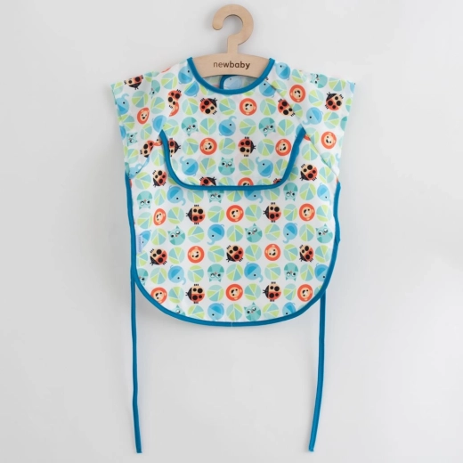 Die Baby-Lätzchen-Schürze NEW BABY in Blau ist der ideale Helfer für den täglichen Essensalltag und kreative Momente. Leicht, weich und angenehm im Griff, dabei robust und pflegeleicht – bei Verschmutzung einfach mit einem feuchten Tuch abwischen oder in der Maschine waschen. Die praktische Tasche fängt Essensreste und Flüssigkeiten auf, damit Umgebung und Kleidung möglichst sauber bleiben.