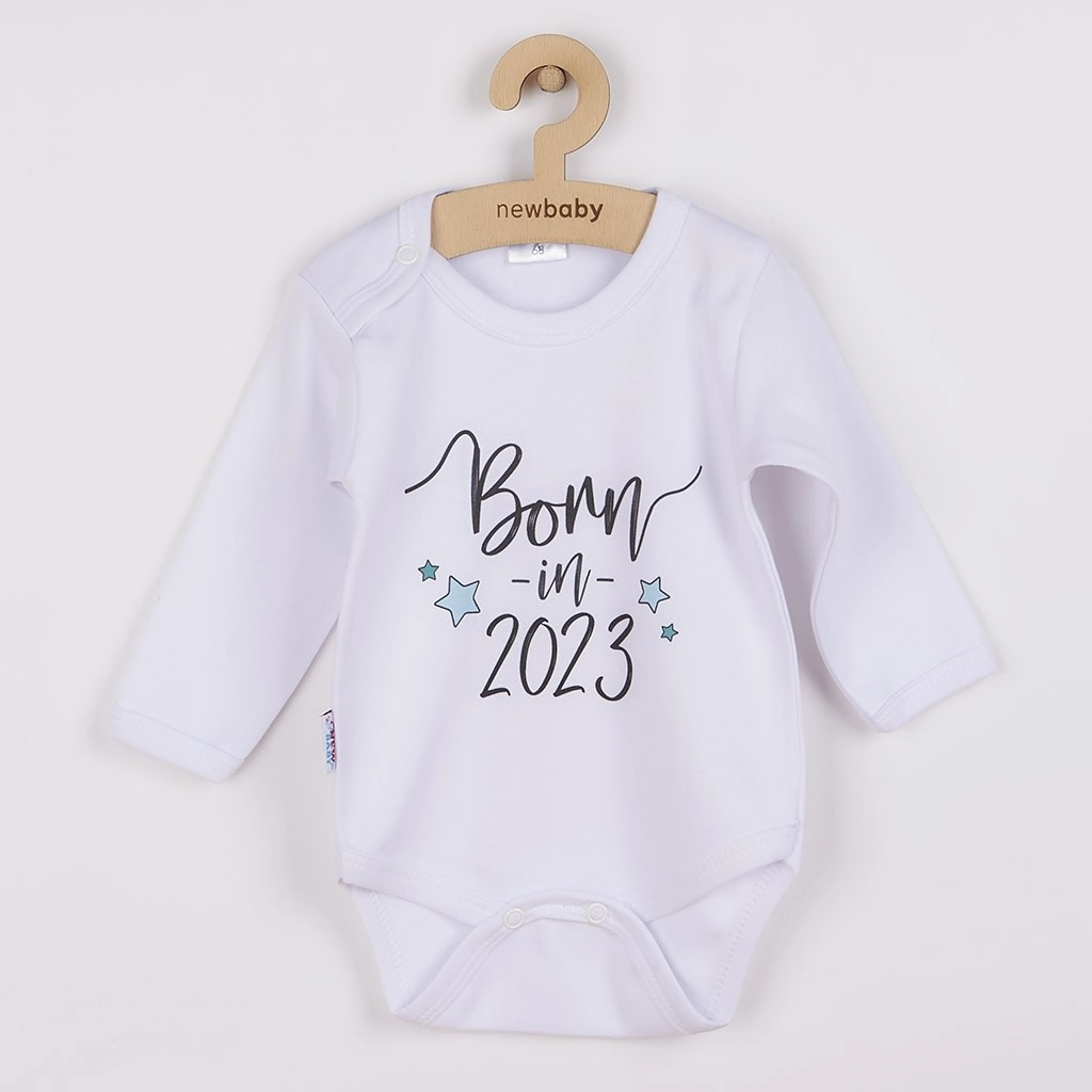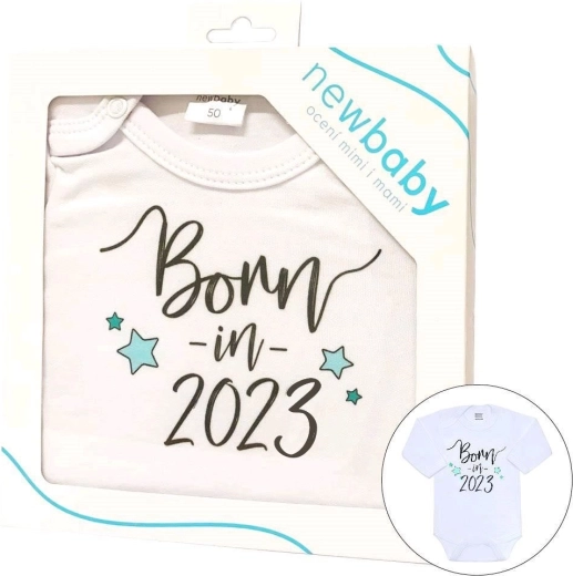 Stilvoller Baumwoll-Body für Babys mit dem Aufdruck Born in 2023 – ideal als originelles Geschenk. Aus 100 % weicher Baumwolle gefertigt, mit bequemem Druckknopfverschluss an der Schulter und im Schritt sowie zertifizierten Druckfarben, die sanft zur zarten Babyhaut sind. Tschechische Marke.