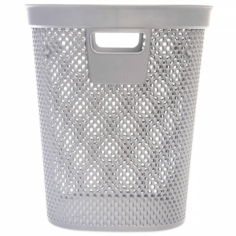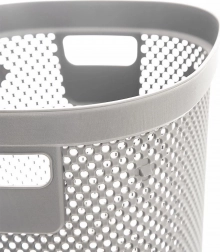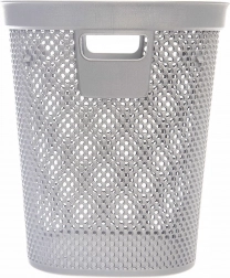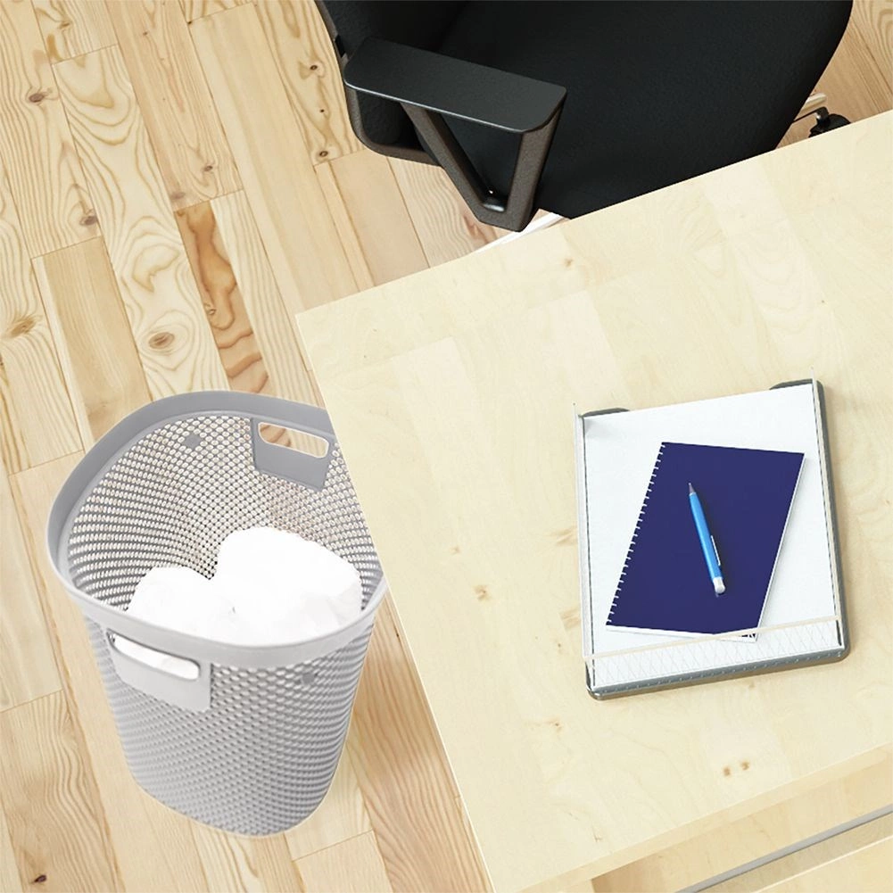 Praktischer Büroabfalleimer mit einem Volumen von 12,5 l in eleganter grauer Farbe. Dank der robusten Konstruktion, Belüftungsöffnungen und bequemen Griffmulden ideal für Büro, Homeoffice und Wartebereiche. Abmessungen: 26,5 × 26,5 × 30 cm.