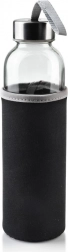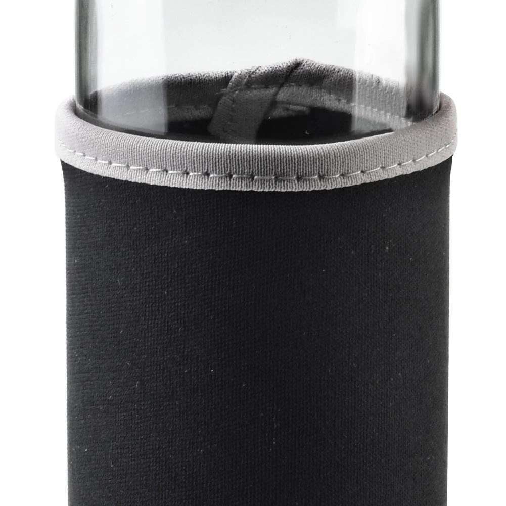 Die schwarze Neoprenhülle schützt die Flasche vor Stößen, verbessert den Griff und hilft, die Getränketemperatur länger stabil zu halten.