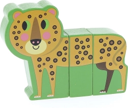 Das Holzpuzzle Fröhliche Safari bietet Kindern ab 2 Jahren Spielspaß mal anders: Jedes Tier besteht aus massiven Teilen mit versteckten Magneten, die sanft aneinander haften. Die Teile können zwischen den einzelnen Tieren ausgetauscht werden, um lustige „Hybride“ zu erschaffen, die Fantasie und Neugier anregen.