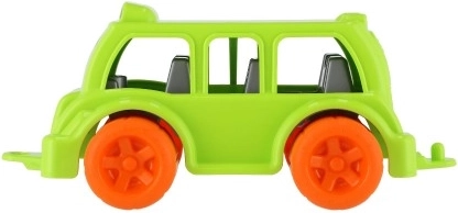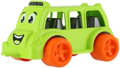 Das Modell besteht aus robustem, sicherem Kunststoff und hat abgerundete Kanten für einen bequemen und sicheren Griff. Die Farbvarianten (Gelb, Rot, Grün) fallen sofort ins Auge und unterstützen die Farbwahrnehmung. Das Spiel mit dem Bus fördert die Hand-Auge-Koordination, die Feinmotorik und das soziale Spiel.