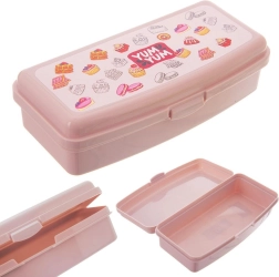 Die Dose besteht aus hochwertigem, lebensmittelechtem Kunststoff in Rosa. Der stabile Clip sorgt für einen zuverlässigen Verschluss und länger anhaltende Frische. Das Design mit dem Motiv „YUM YUM“ verleiht der Brotzeit eine spielerische Note und hilft Kindern, ihre Dose leicht zu unterscheiden.