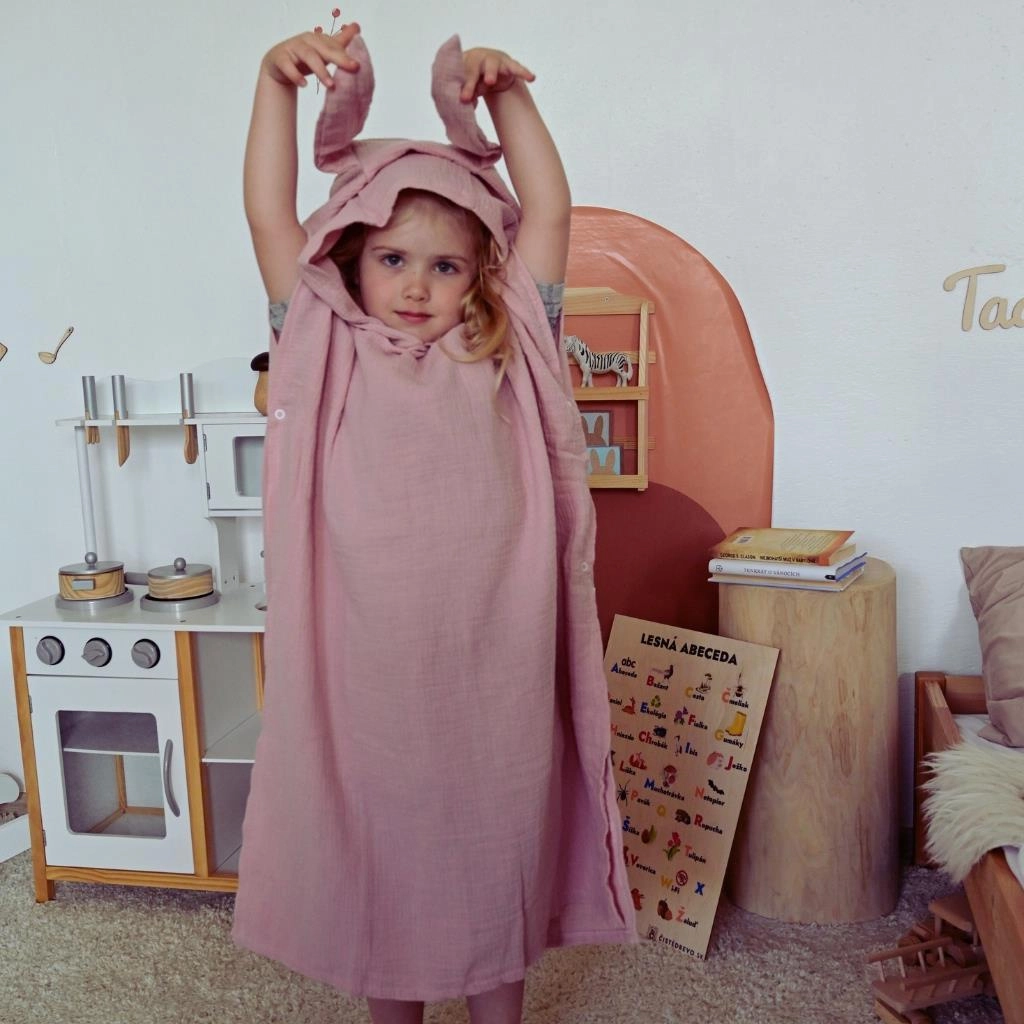 Dieses Kinder-Musselin-Poncho aus 100% Baumwolle bietet außergewöhnlichen Komfort und praktische Alltagstauglichkeit. Das Material ist leicht, luftig und überraschend saugfähig – perfekt als Poncho und zugleich als weiches Handtuch. Dank des lockeren Schnitts passt es sich bequem verschiedenen Staturen an und hält länger, während das Kind wächst.