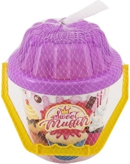 Der leichte Eimer mit Henkel und Sweet-Muffin-Motiv dient als Stauraum für das gesamte Set und erleichtert den Transport im Netz.